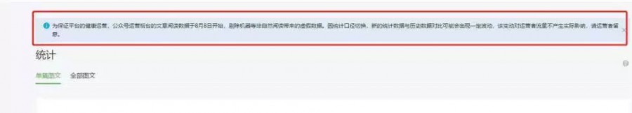 有人说,微信终于对公众号动真格了;也有人说,潮水褪去,谁一直在裸泳即将真相大白。 引发大家如此评论的原因,是微信在8月7日凌晨发布的一则通知: 为保证平台的健康运营,公众号运营后台的文章阅读数据于8月8日开始,剔除机器等非自然阅读带来的虚假数据。因统计口径切换,新的统计数据与历史数据对比可能会出现一定波动,该变动对运营者流量不产生实际影响,请运营者留意。