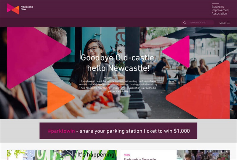全屏背景图的设计,是最受欢迎的背景风格之一,利用大图将用户的视线集中是最合适不过的了。在多数情况下,利用全尺寸图像作为主页的背景,文字和导航菜单,CTA按钮或信息等会布置在图像的顶部。 如果想实现更有趣的视觉效果,我们可以在图上使用重叠几何图案的技术。设计师可以添加各种各样简单的样式和形状。 做好这项工作,就要记住目的是利用几何图案。视线集中的几何图案重叠的部分,如果能促使用户进行特定的行为就更好了。在黑色或黑暗系等沉重的背景之中加上颜色,将会起到非常棒的引导视线的作用。 02. 灰色的运用