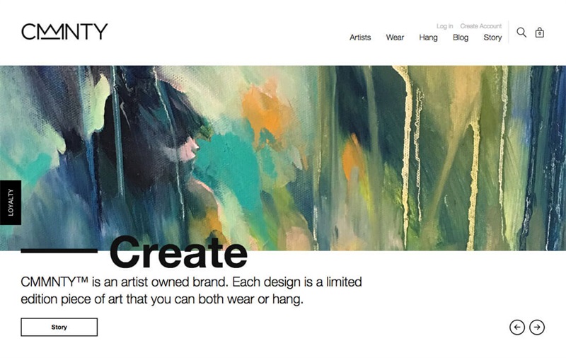 让我们不使用网格来布局吧。(或者至少尝试一下调整为左右不对称。) 背景设计并不需要完全的对齐每一个要素、图案。此外,他也没有必要是纯色或者图案。 将网页设计所需要的要素组合起来,围绕左右不对称来平衡它们。例如在上述案例 Nap Luxury GuestHouse 中,画面被整个背景图所充满,仅在右侧留有少许留白。还有在 CMMNTY 中,文字文本破坏了空白空间的平衡,将用户的视线强制性的转移到文字上来了。还有在 vase 这个案例中,在特大的商品图案上,仔细斟酌文字文本放置的位置使得设计整体十分出众。 05. 抽象效果与抽象艺术设计