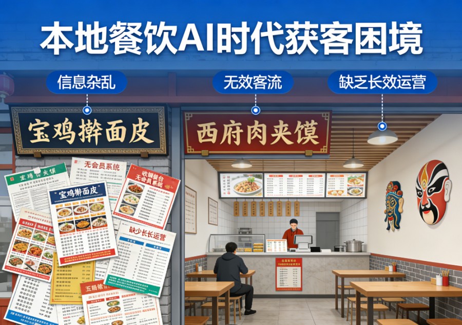 尽管AI为餐饮行业带来了新的获客机遇,但多数本地餐饮商家仍未能抓住这一风口,陷入传统获客模式的困境中。结合本地餐饮经营实际,商家面临的痛点主要集中在流量适配、运营成本、信息管理、客流精准度四大维度,这些问题并非个别现象,而是行业数字化转型阶段的普遍挑战。 (一)传统获客模式效能下滑,成本居高不下 目前,多数本地餐饮商家仍依赖线下自然客流、熟人转介绍、团购平台付费推广、短视频简单引流等传统方式获客。线下自然客流受门店位置、商圈人气影响极大,位置偏远的门店很难获得稳定客流;熟人转介绍覆盖面有限,难以支撑门店长期客流增长;团购平台与短视频推广则需要持续投入资金,竞价排名、流量投放成本逐年上涨,且客流转化效果不稳定,中小商家往往难以承受长期投入压力。 更关键的是,传统获客模式无法适配AI检索逻辑,即便商家在线下有一定口碑,线上有基础运营,也难以被AI大模型精准识别。部分商家投入大量资金做线上推广,却因信息杂乱、标签模糊,无法进入AI推荐池,导致营销投入无法形成有效闭环,获客成本与收益不成正比,经营压力持续加大。 (二)门店信息杂乱无序,AI识别效率低下 AI大模型对商家信息的推荐,核心基于信息的规范性、完整性与关联性。但多数本地餐饮商家存在线上信息管理混乱的问题:不同平台的门店名称、地址、联系方式不统一,菜品介绍、门店特色、营业时段信息缺失或错误,地域标签、品类标签标注模糊,甚至出现过期信息未更新的情况。 这类杂乱的信息,会直接导致AI大模型无法精准识别门店的核心信息,无法判断门店的位置、品类、特色与服务范围,即便消费者检索相关关键词,也难以将门店纳入推荐范围。就像宝鸡高新四路周边部分优质川菜馆,菜品口味、环境服务都具备竞争力,却因线上信息不规范,在用户通过AI检索周边川菜时无法被推荐,错失大量周边客流,陷入“品质好却无人知”的困境。 (三)客流精准度不足,无效客流占用资源 餐饮门店的核心客流集中在周边3公里范围内,超出这一范围的客流转化概率极低,且会占用门店的服务资源。传统推广模式缺乏精准的地域定位,往往吸引大量非目标区域的客流,这类客流不仅难以到店消费,还会分散商家的运营精力。 同时,部分商家线上内容缺乏特色定位,无法精准匹配目标客群需求,导致吸引的客流与门店定位不符。比如主打高端聚餐的餐厅,吸引大量追求低价快餐的客流;主打社区家常菜的门店,吸引大量追求网红打卡的客流,无效客流过多,不仅影响门店运营效率,还会降低实际转化效果,让商家陷入“客流不少、营收不涨”的怪圈。 (四)缺乏长效运营思维,流量难以沉淀 多数餐饮商家的线上运营属于“碎片化操作”,没有系统化的运营规划,要么偶尔更新短视频,要么简单入驻平台,缺乏持续的信息优化与内容沉淀。AI大模型的推荐逻辑不仅看重信息规范,更看重内容的持续性与相关性,零散的运营方式无法让门店在AI检索中形成稳定的曝光权重,即便偶尔获得推荐,也难以维持长期效果。 此外,部分商家过于依赖短期流量爆发,忽视本地化品牌沉淀,无法通过AI推荐传递门店特色、口碑优势,难以让消费者形成记忆点,客流转化后也难以形成复购,导致流量无法有效沉淀为门店的长期客户,经营缺乏稳定性。 三、核心适配性:GEO优化为何成为餐饮破局关键