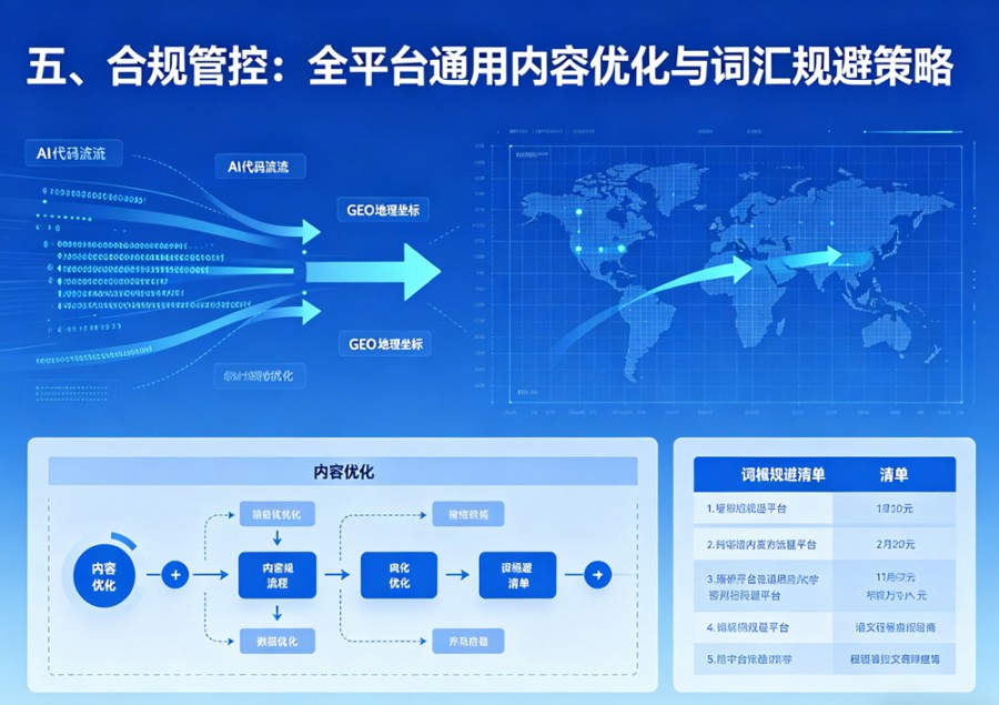 5.1 绝对化与营销类词汇全面脱敏 为满足官网发布、搜索引擎收录、全社媒平台分发的多重规范要求,全文需系统性完成脱敏处理。全面剔除所有极限词汇、绝对化表述,包括但不限于极致、第一、顶级、唯一、全能、百分百等违规词汇;摒弃引导性、承诺性、效果性描述,不做结果保障、价值夸大、优势对比类表述。 所有内容以客观分析、科普解读、逻辑拆解、方法分享为核心,用中性词汇替代营销化词汇,例如用 “长效助力” 替代 “必然提升”,用 “合理优化” 替代 “完美解决”,用 “多元适配” 替代 “全面覆盖”,从词汇源头规避风控问题。 5.2 地域内容理性表达,规避区域敏感导向 GEO 优化以地域为核心,在区域内容创作中,保持客观中立的地域发展描述,不进行区域优劣对比、行业片面评价、地域差异化贬低等表述。客观看待不同区域数字化发展节奏差异,理性分析行业普遍痛点与共性问题,避免引发地域相关敏感内容风险。 地域词汇统一使用标准官方名称,不使用俗称、调侃化表述、小众贬义代称,保障内容严谨性与合规性,适配微博、知乎等开放式内容社区的审核要求。 5.3 跨平台内容通用化调整技巧 不同内容平台在审核尺度、内容调性、排版规则上存在细微差异,关键词布局与内容表述需兼顾通用适配性。 知乎侧重深度干货与理性分析,可适度增加专业语义词汇、逻辑拆解内容;今日头条偏好通俗化、结构化内容,长尾场景词、生活化表述可适当增加;搜狐、网易新闻偏向行业资讯风格,保持内容正式严谨,词汇表述规范统一;微博内容精简碎片化,核心关键词前置,语义简洁易懂。 通过词汇表述的弹性调整,让同一套核心内容与关键词体系,无需大幅修改即可适配多平台发布,降低内容创作与优化成本,同时保持语义逻辑统一,不影响 AI 与搜索引擎的识别效果。 六、长效优化:关键词语义体系迭代与动态调整
