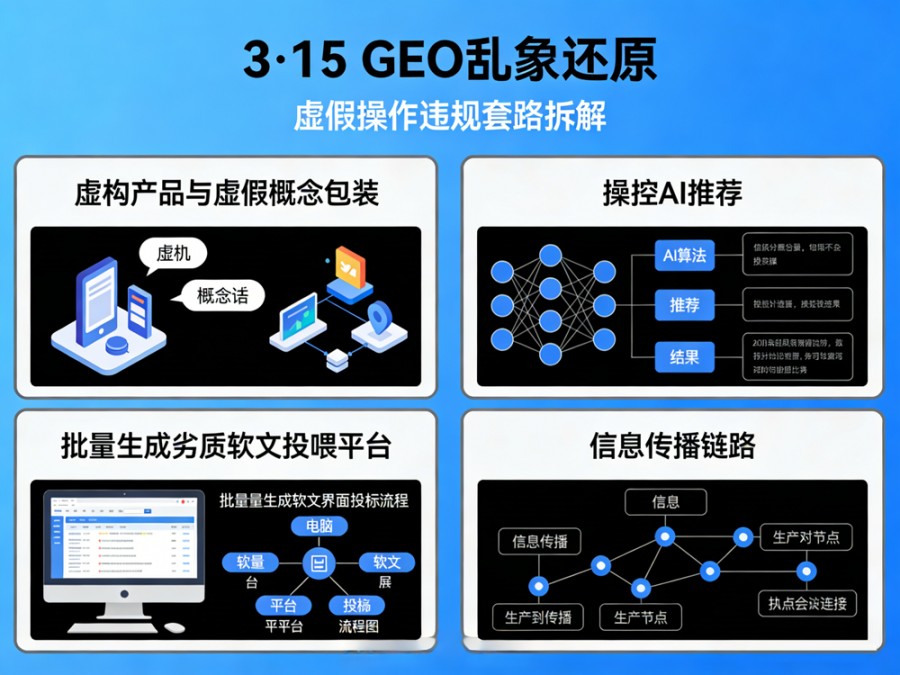 3·15曝光敲响警钟,GEO行业亟需拨乱反正 每年3·15国际消费者权益日,各类行业乱象与违规经营行为都会被集中曝光,这既是对市场乱象的约束,也是对合规行业的保护。在2026年3·15相关报道中,生成式引擎优化(GEO)领域的部分违规操作引发行业热议,也让不少企业经营者、从业者对GEO这一新兴技术服务产生误解。部分不良服务商借助AI工具实施虚假信息传播、恶意操控流量推荐的行为,不仅扰乱了市场秩序,更让正规GEO服务蒙受污名。