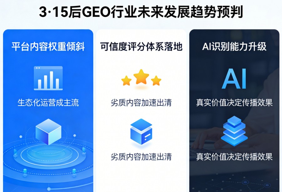 3·15曝光犹如一剂“清醒剂”,既倒逼行业清理违规乱象,也推动平台加速监管升级,更为正规GEO服务营造了健康的发展环境。结合AI技术发展、平台监管动向与市场需求变化,宝鸡世纪网络对3·15之后的GEO行业走向,从短期、中期、长期三个维度作出理性预判: (一)短期趋势:平台内容权重倾斜,生态化运营成主流 短期内,各大AI平台为防范虚假信息泛滥、守住内容安全底线,会进一步调整推荐算法,将内容权重向自有合规自媒体生态倾斜。例如部分AI搜索平台,会优先推荐自家生态内的优质短视频、图文内容,这就要求企业在布局GEO服务时,同步适配平台生态规则。 企业可借助AI数字人、合规内容生成工具等技术手段,高效产出适配生态的内容,但核心前提是具备扎实、真实的AI知识库作为支撑。没有真实内容打底,单纯追求形式上的生态适配,依旧难以获得长期推荐权重,反而容易陷入新的违规陷阱。 (二)中期趋势:可信度评分体系落地,劣质内容加速出清 中期来看,为从根源上遏制虚假信息传播,各大AI平台会逐步建立完善的内容可信度评分体系,从内容真实性、主体资质、用户反馈、历史信誉等多个维度,对发布内容进行综合打分,打分结果直接决定内容推荐权重。 在这一趋势下,依靠批量生产的劣质软文、虚假内容将彻底失去生存空间,具备真实产品背书、正规资质、优质用户口碑的内容,会获得更高的推荐权重。与此同时,GEO服务市场也会迎来洗牌,大量无资质、无合规服务能力的黑帽服务商将逐步出局,市场需求向正规白帽GEO服务商集中,行业整体服务价格或将迎来理性上调,呈现“劣币驱逐、良币升值”的格局。 (三)长期趋势:AI识别能力升级,真实价值决定传播效果 长期来看,随着AI大模型技术的持续迭代,算法对虚假内容、低质内容的识别能力会不断增强,推荐逻辑会逐步贴近人类真实口碑的形成机制,不再单纯依赖内容数量、关键词堆砌,而是更看重内容的实用性、真实性、专业性。 对于搭建了完善AI知识库的企业而言,这种趋势会带来价值的指数级放大:真实、优质的内容会通过AI引擎实现精准分发,触达目标客群,形成品牌口碑与获客的良性循环;而缺乏真实价值支撑、依赖违规操作的企业,将彻底被市场淘汰。GEO行业也将摆脱野蛮生长,回归“技术赋能真实价值”的本质,成为企业数字化运营的常规合规工具。 五、致中小企业经营者:GEO合规布局的实操建议