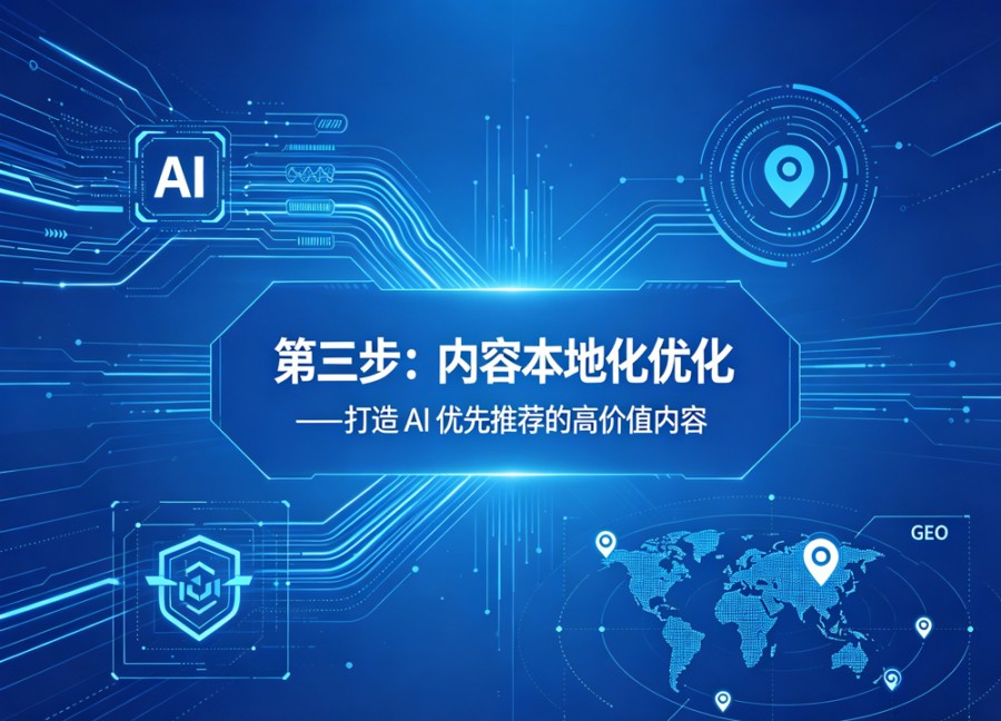(一)统一核心基础信息(NAP 体系) NAP(名称、地址、电话)是 AI 识别企业的核心标识,必须做到全平台 100% 一致。 企业名称:统一使用工商注册全称,如需简称,需固定唯一简称,禁止在不同平台使用不同名称(如 “XX 服务中心” 与 “XX 服务部” 混用); 地址:详细到门牌号,格式统一为 “XX 省 XX 市 XX 区 XX 路 XX 号 XX 商铺 / 大厦”,包含商圈、地标等辅助信息,地图平台需同步精准定位; 联系电话:固定唯一座机或手机号,如需添加备用电话,需明确标注 “主叫”“备用”,避免多平台号码混乱; 补充信息:统一营业时间、服务半径、邮箱、官网地址,确保所有平台展示一致。 (二)完善企业资质与权威信息 资质与权威信息是提升 AI 可信度的关键,本地企业需梳理并完善可验证的资质材料,同步至各平台。包括:营业执照、经营许可证、行业资质证书(如食品经营许可证、维修资质证书)、本地荣誉证书(如 “本地诚信商家”“行业示范单位”)、合作资质(如本地品牌授权书)等。所有资质需清晰展示名称、颁发单位、有效期,图片格式规范、内容清晰,便于 AI 识别与验证。 (三)规范平台信息填写格式 不同平台对信息展示有不同要求,需按照 AI 收录偏好,规范填写格式: 标题与简介:标题包含 “地域 + 核心业务 + 企业名称”,简介控制在 100-200 字,清晰涵盖定位、业务、价值、服务范围,语句通顺、无错别字、无敏感词; 分类标签:选择平台精准类目,添加本地属性标签(如 “宝鸡本地餐饮”“渭滨区家电维修”)、业务标签(如 “上门服务”“当日达”),标签数量控制在 3-5 个,避免堆砌; 图片与视频:上传高清门店实拍图、产品图、服务场景图,图片无水印、无违规内容,视频突出本地服务过程、门店环境,时长控制在 15-60 秒,标题、描述包含地域与业务关键词。 (四)清理冗余与错误信息 排查所有线上平台,清理过期、错误、重复的信息:一是下架已停止的业务、过期的活动、失效的联系方式;二是修正错误的地址、营业时间、资质信息;三是删除重复发布的内容,避免 AI 判定为低质重复内容。同时,建立信息台账,记录各平台信息内容、更新时间,便于后续定期核查与更新。 四、第三步:内容本地化优化 —— 打造 AI 优先推荐的高价值内容 内容是 GEO 优化的核心载体,AI 更倾向于收录和推荐 “贴合用户需求、专业完整、本地化强、结构规范” 的内容。本地企业的内容优化需围绕 “本地需求、语义匹配、结构规范、多模态协同” 四大原则,打造既能被 AI 精准识别,又能打动本地用户的内容体系。