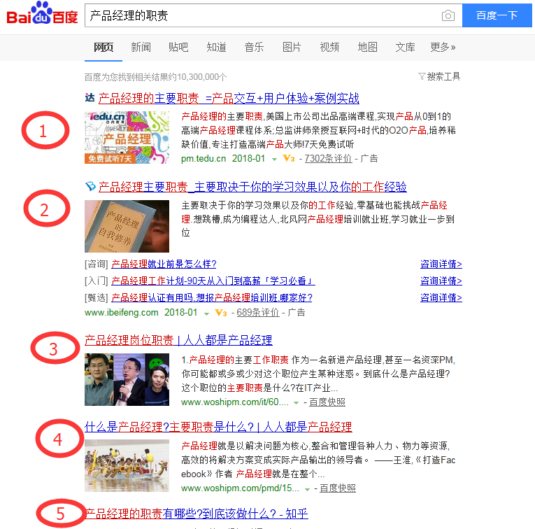SEO对大家来说并不是什么陌生的字眼,究竟什么是SEO呢? SEO是提高网站浏量而做的优化手段。举个例子:当有一个问题你不知道的时候我们需要查询百度这个意思究竟是什么意思,或者有些东西有什么用途,会发现有些文章靠前,有些文章靠后,那么这个排名可以简单的阐释为SEO.比如我们搜索“产品经理职责”