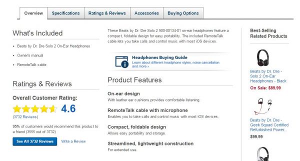 BestBuy的产品页面也遵循类似的结构,但是组织了更好的内容: