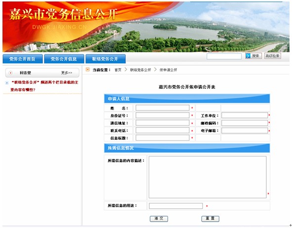《中华人民共和国政府信息公开条例》(中华人民共和国国务院令第492号)自2008年5月1日起施行以来,受到了各级政府、网民的高度关注,虽然各地在具体落实政府信息公开情况不尽相同,表现方式也是百花齐放,但基本上都是遵循《中华人民共和国政府信息公开条例》进行建设和运行。3年来,政府信息公开已趋于成熟并深入人心,网民想要了解政府各部门工作职能、联系方式、办事指南等,大多会通过地方门户网站的政府信息公开专栏进行查询,政府信息公开已成为政府门户网站不可或缺的重要内容。 但在党务信息公开方面,没有规范的公开条例可以遵循,因此很少有地市利用地方门户网站开展党务信息公开。嘉兴,作为中国共产党的诞生地,各级党委、政府相当重视党务工作,在中国共产党建党90周年之际,进行了党务信息公开网站建设方面的尝试。下面就建设情况与大家分享。 1 嘉兴市党务信息公开网站建设目的 依托中国嘉兴门户网站平台建设嘉兴市党政信息公开网站,扩大党员群众的知情权、参与权、表达权和监督权,不断深化全市的党务公开工作。 2 嘉兴市党务信息公开网站主要内容 网站根据信息来源,设置两个一级栏目:党务公开信息(各部门主动公开信息)、联络党务公开(党员群众申请党务信息公开、反映党务方面意见、建议)。