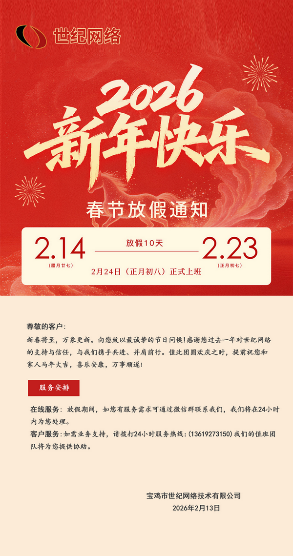 世纪网络2026年春节放假通知