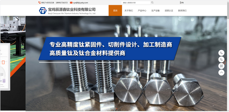 经过20天左右的设计制作,由我公司 宝鸡市世纪网络技术有限公司承建的宝鸡辰源鑫钛业科技有限公司中英文双语版网站开通上线运行了,做为宝鸡网站建设的行业专业品牌,我公司如期圆满的助力客户完成了本次企业官网的改版项目,客户对此次改版比较满意 宝鸡辰源鑫钛业科技有限公司 中文版网址:https://www.bjcyxty.com/cn/